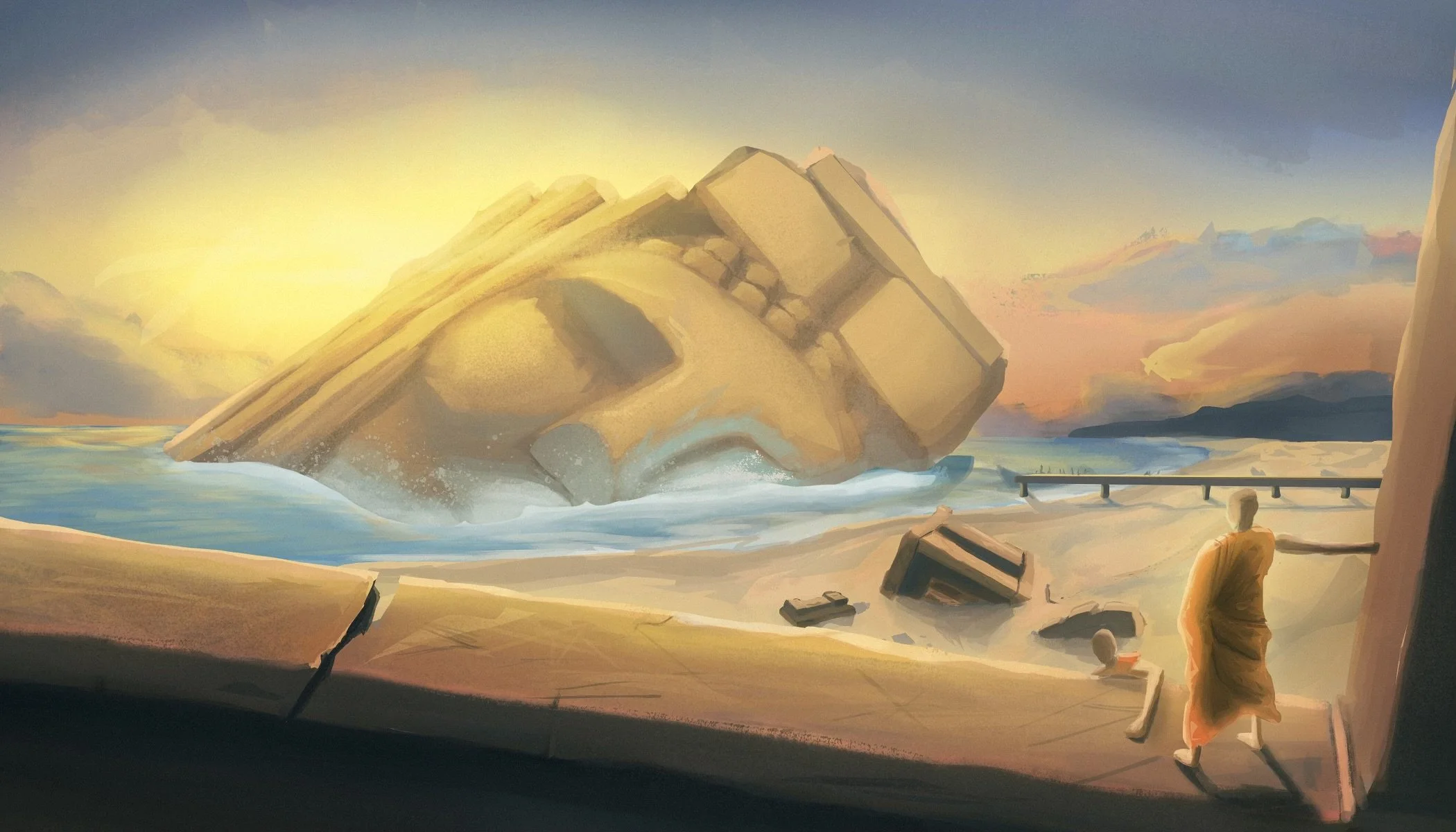 I took that same ethos of mixing Orange County beaches and Cambodian culture by mashing those two concepts quite literally. I came up with a backstory that there was a rupture in space and time, causing many ancient landmarks of the world to teleport to random other regions, creating an intersecting effect between the surrounding landscapes.
